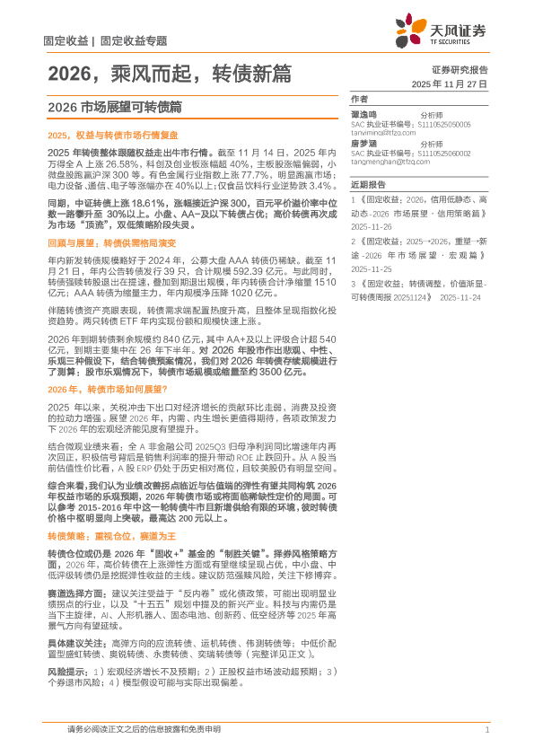 【天风证券】【202511】2026市场展望可转债篇:2026,乘风而起,转债新篇-26页