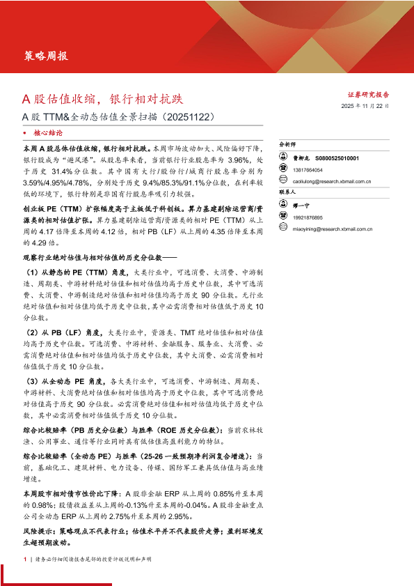 【西部证券】【202511】A股估值收缩,银行相对抗跌-16页