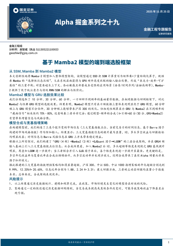 【国金证券】【202511】基于Mamba2模型的端到端选股框架-19页