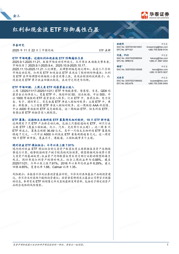 【华泰证券】【202511】ETF点评:红利和现金流ETF防御属性凸显-12页