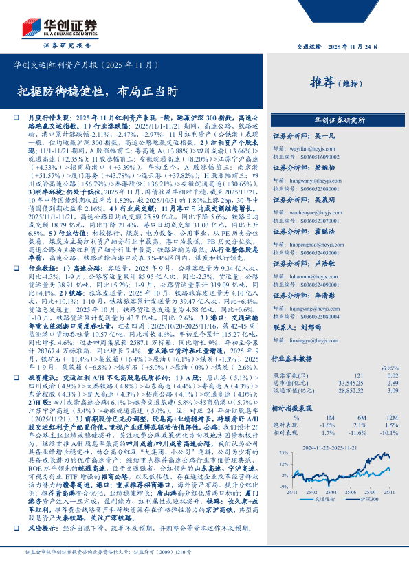 【华创证券】【202511】交通运输行业交运_红利资产月报(2025年11月):把握防御稳健性,布局正当时-19页