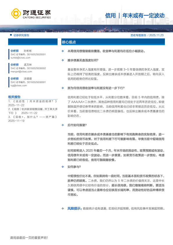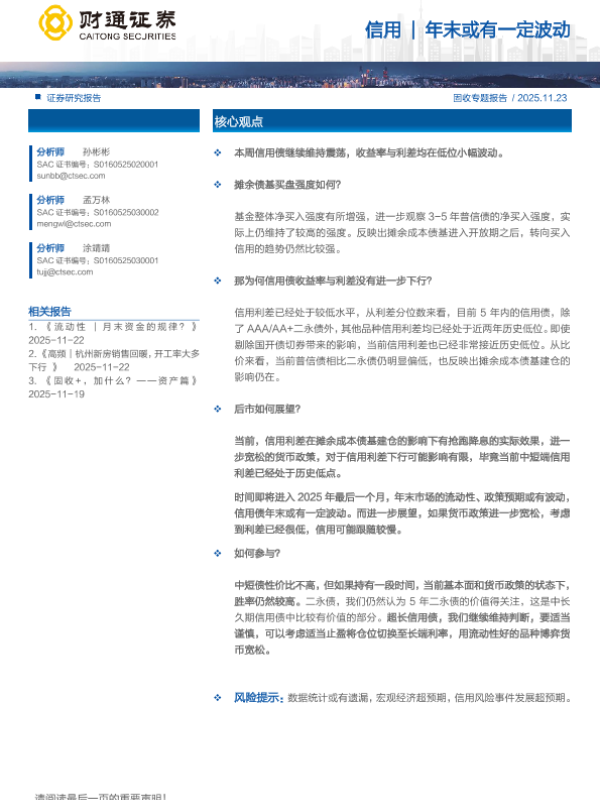【财通证券】【202511】信用|年末或有一定波动-25页