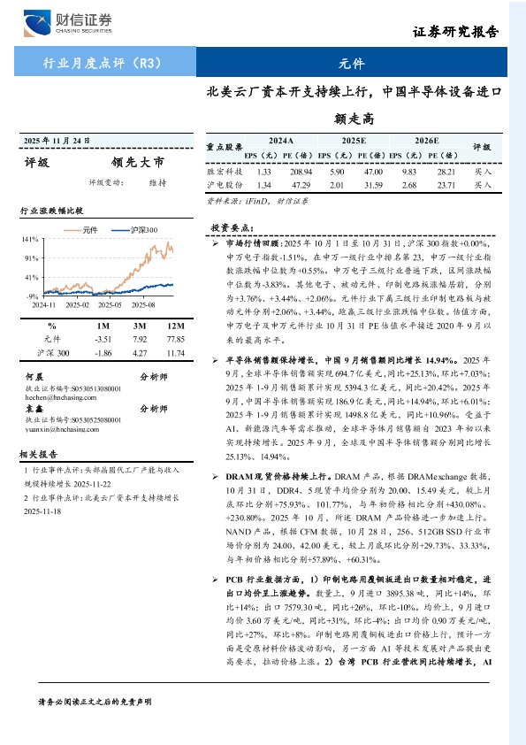 【财信证券】【202511】元件行业月度点评:北美云厂资本开支持续上行,中国半导体设备进口额走高-16页