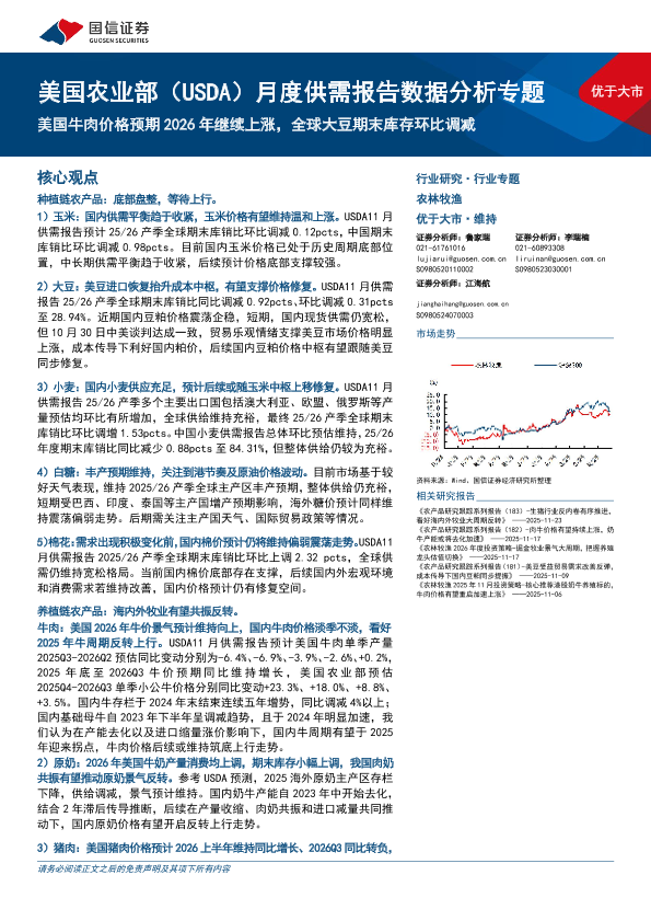 【国信证券】【202511】优于大市 美国农业部(USDA)月度供需报告数据分析专题 美国牛肉价格预期2026年继续上涨,全球大豆期末库存环比调减-39页
