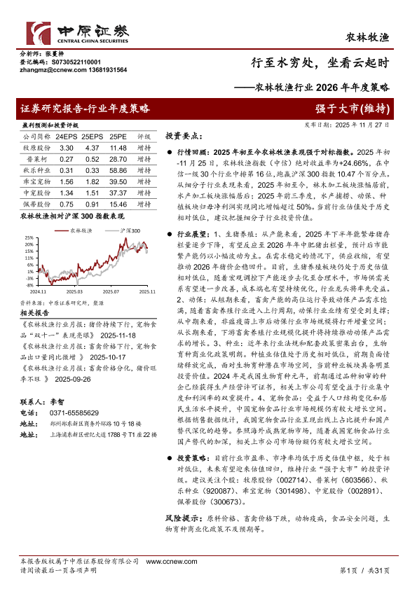 【中原证券】【202511】农林牧渔行业2026年年度策略:行至水穷处,坐看云起时-31页