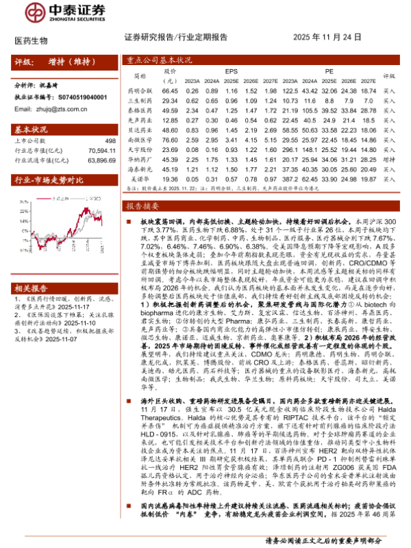 【中泰证券】【202511】医药生物:把握回调后的机会,积极布局2026年-13页