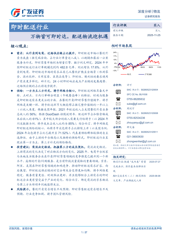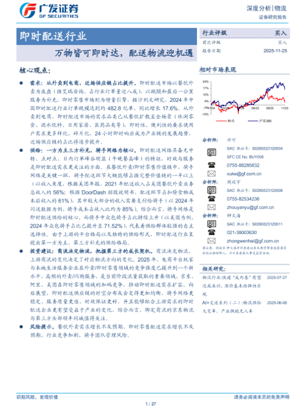 【广发证券】【202511】即时配送行业:万物皆可即时达,配送物流迎机遇-27页