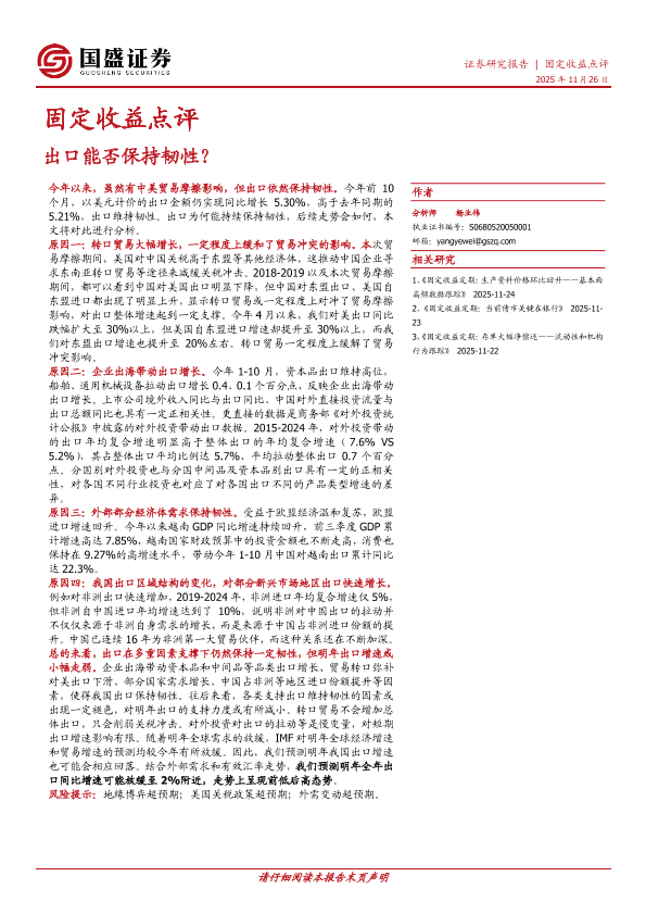 【国盛证券】【202511】固定收益点评:出口能否保持韧性?-14页
