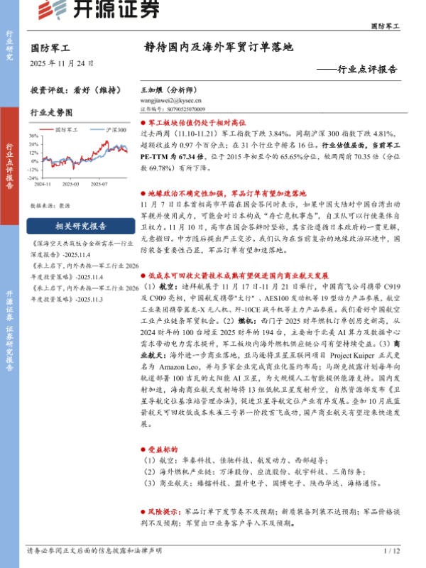 【开源证券】【202511】国防军工行业点评报告:静待国内及海外军贸订单落地-12页