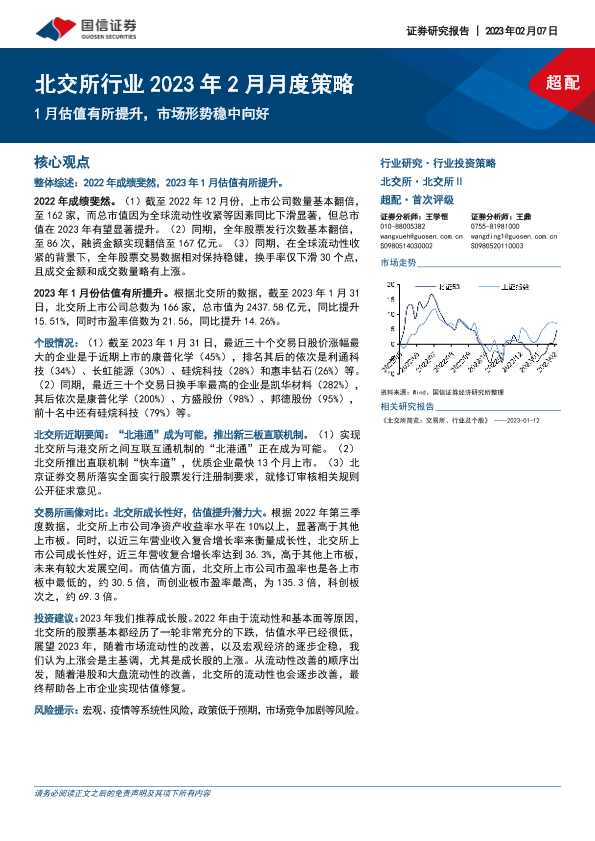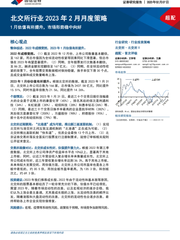 【国信证券】【20230207】北交所行业2023年2月月度策略:1月估值有所提升,市场形势稳中向好-18页