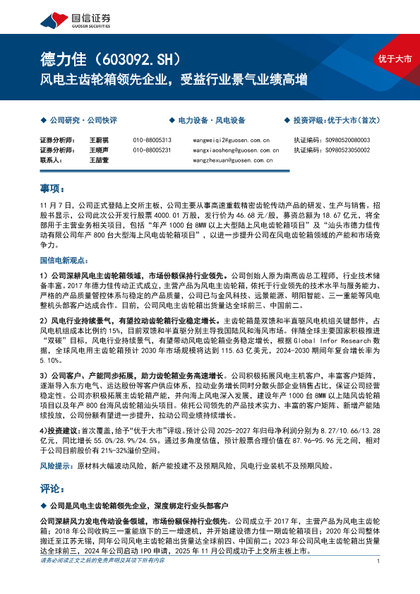 【国信证券】【202511】德力佳(603092)风电主齿轮箱领先企业,受益行业景气业绩高增-20页