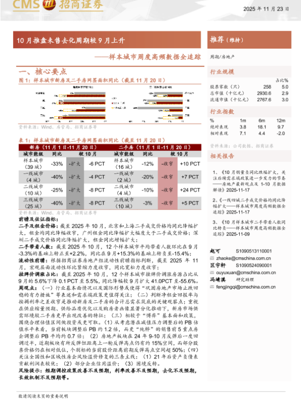 【海通证券】【202511】房地产行业样本城市周度高频数据全追踪:10月推盘未售去化周期较9月上升-11页