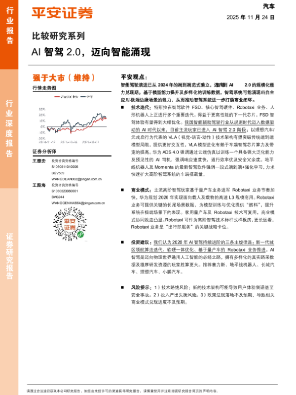 【平安证券】【202511】AI智驾 2.0,迈向智能涌现-19页