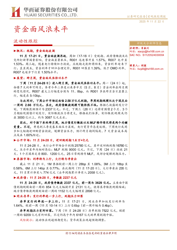 【华西证券】【202511】流动性跟踪:资金面风浪未平-16页