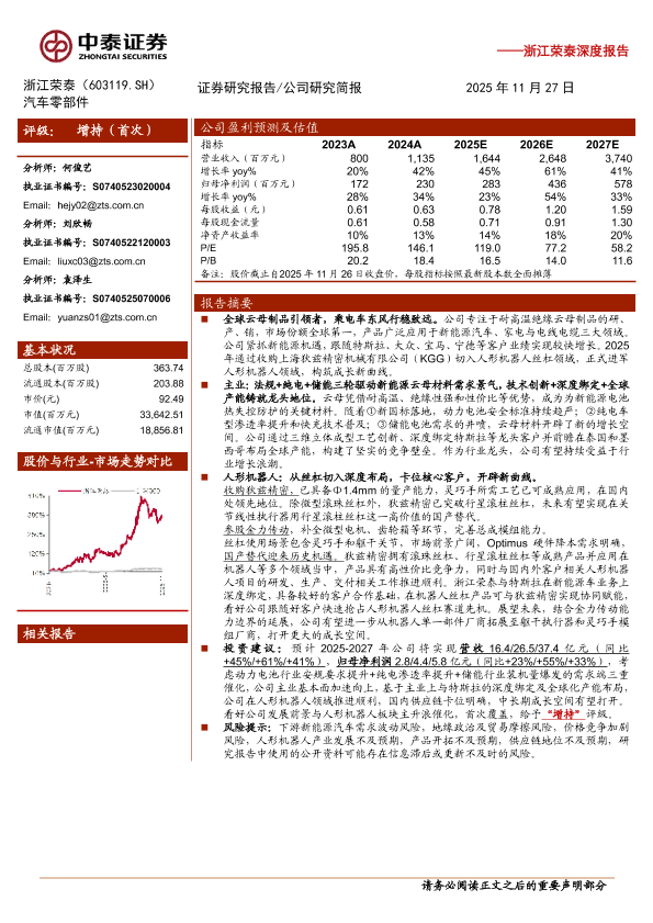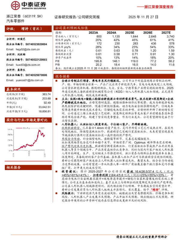 【中泰证券】【202511】浙江荣泰(603119)深度报告:全球云母制品引领者,卡位核心客户,深度布局具身智能-25页