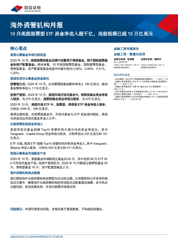 【国信证券】【202510】海外资管机构月报:10月美国股票型ETF资金净流入超千亿,当前规模已超10万亿美元-15页