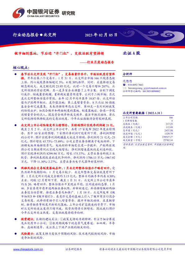 【银河证券】【20230205】北证A股行业月度动态报告:做市细则落地,节后迎“开门红”,交投活跃有望持续-23页