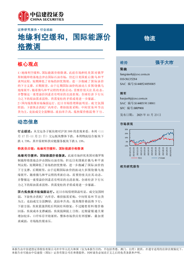 【中信建投证券】【202511】物流行业:地缘利空缓和,国际能源价格微调-14页