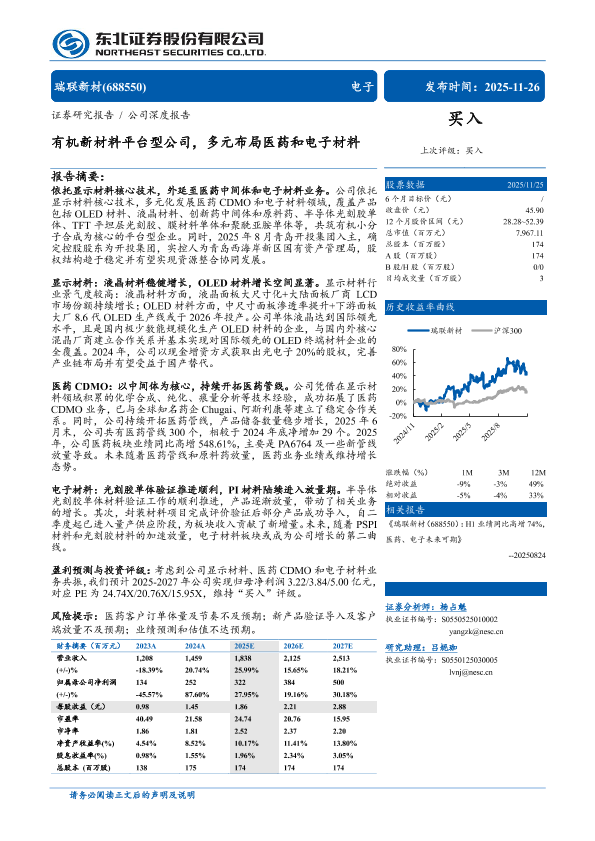【东北证券】【202511】瑞联新材(688550):H1业绩同比高增 74%,医药、电子未来可期-33页