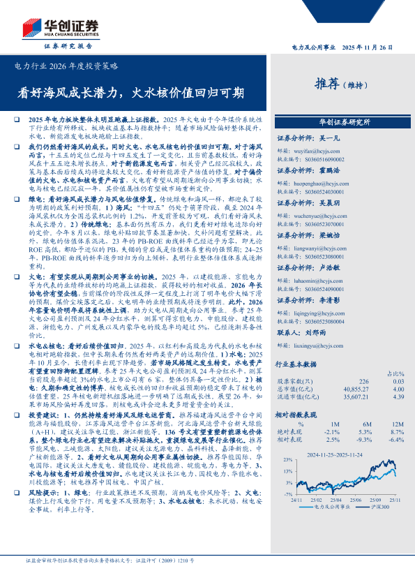 【华创证券】【202511】电力行业2026年度投资策略:看好海风成长潜力,火水核价值回归可期-19页