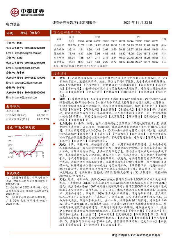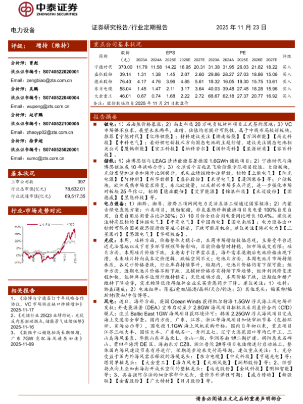 【中泰证券】【202511】电力设备行业:动储需求旺盛,锂电材料价格持续上行-16页