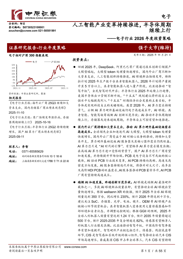 【中原证券】【202511】电子行业2026年度投资策略:人工智能产业变革持续推进,半导体周期继续上行-55页