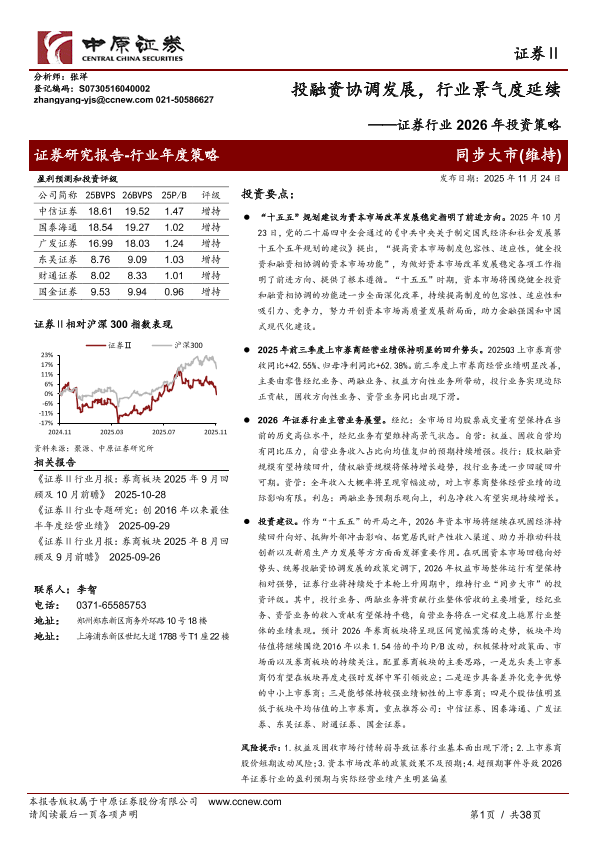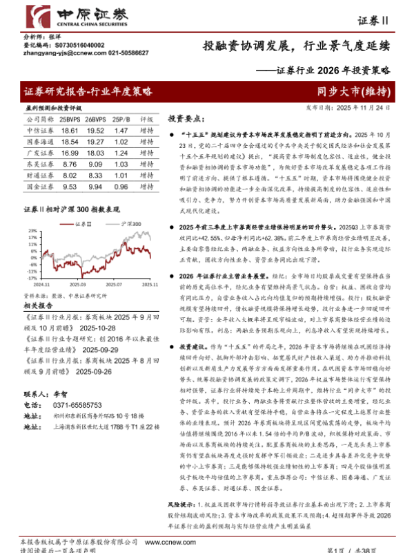 【中原证券】【202511】证券行业2026年投资策略:投融资协调发展,行业景气度延续-38页