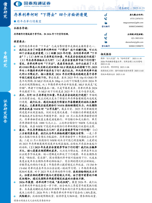 【国泰海通证券】【202511】跨年存单行情展望:存单利率何时“下得去”四个方面讲清楚-12页