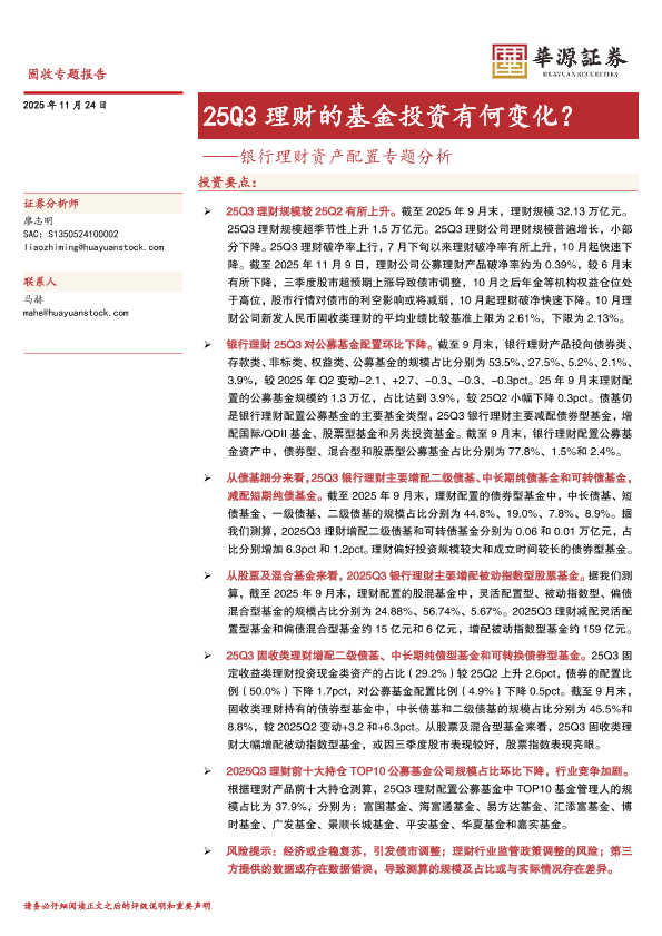 【华源证券】【202511】25Q3理财的基金投资有何变化?——银行理财资产配置专题分析-28页