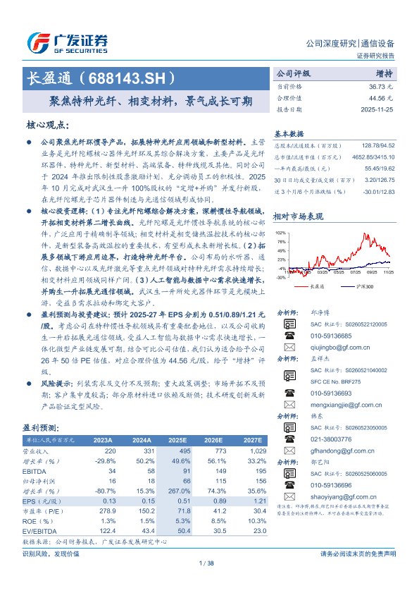 【广发证券】【202511】长盈通(688143)聚焦特种光纤、相变材料,景气成长可期-38页