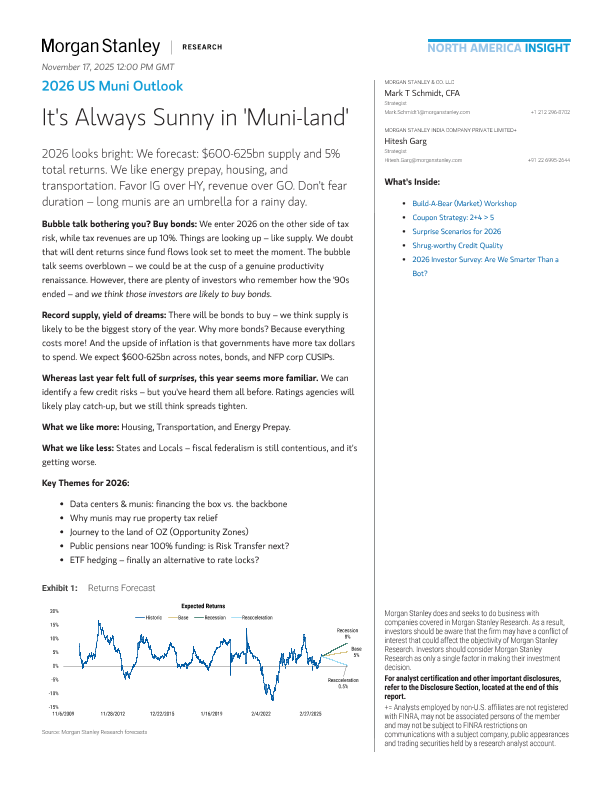 【Morgan Stanley&Co.LLC】【2025】2026 US Muni Outlook It's Always Sunny in 'Muni-Land'-40页