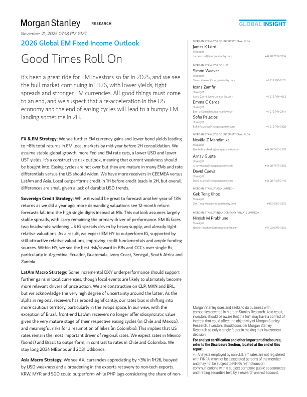 【Morgan Stanley】【202511】2026 Global EM Fixed Income Outlook Good Times Roll On-113页