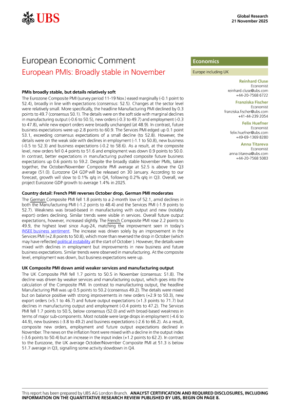 【UBS】【202411】European PMIs Broadly stable in November-11页