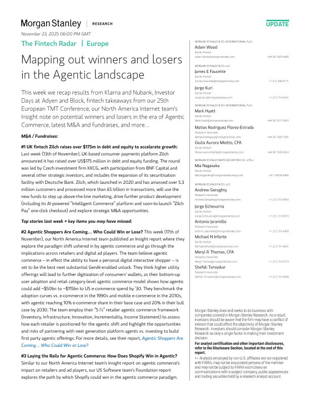 【Morgan Stanley】【2025】The Fintech Radar1Europe Mapping out winners and losers in the Agentic landscape-17页