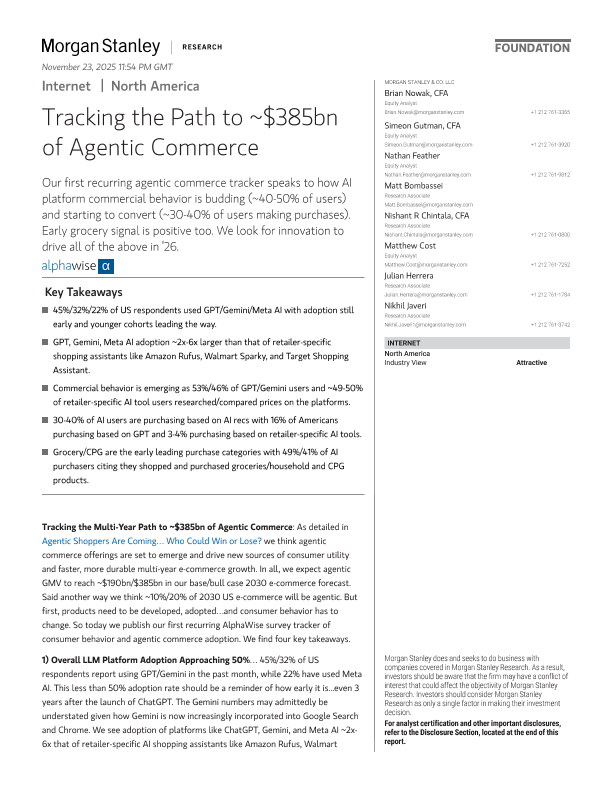 【Morgan Stanley】【202511】Tracking the Path to ~$385bn of Agentic Commerce-25页