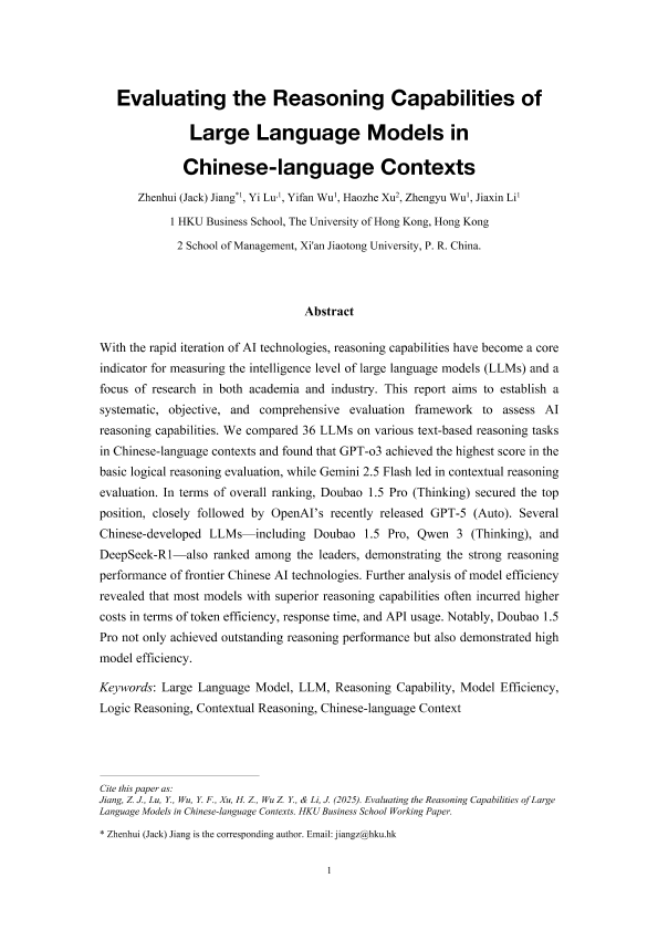 【HKU Business School&The University of Hong Kong】【2025】Evaluating the Reasoning Capabilities of Large Language Models in Chinese-language Contexts-15页
