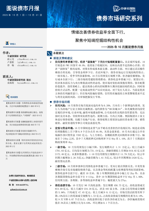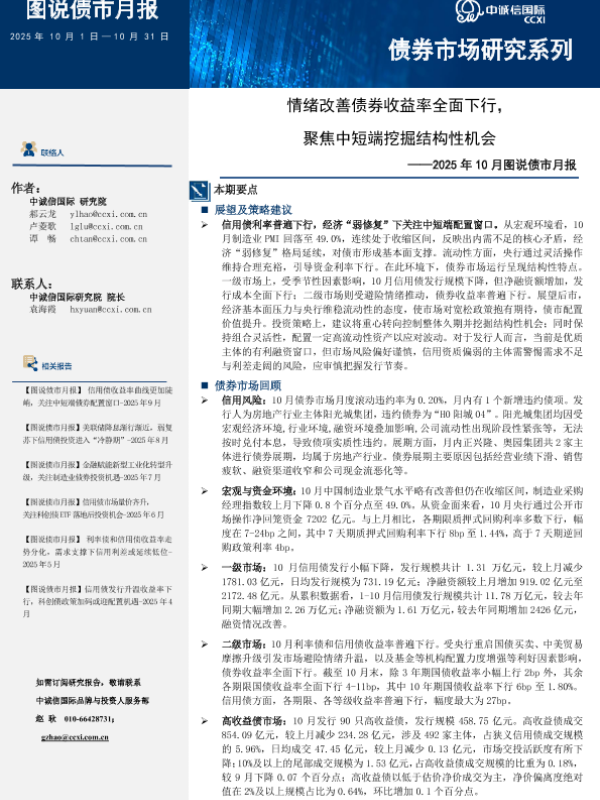 【中诚信国际】【202510】情绪改善债券收益率全面下行,聚焦中短端挖掘结构性机会-19页