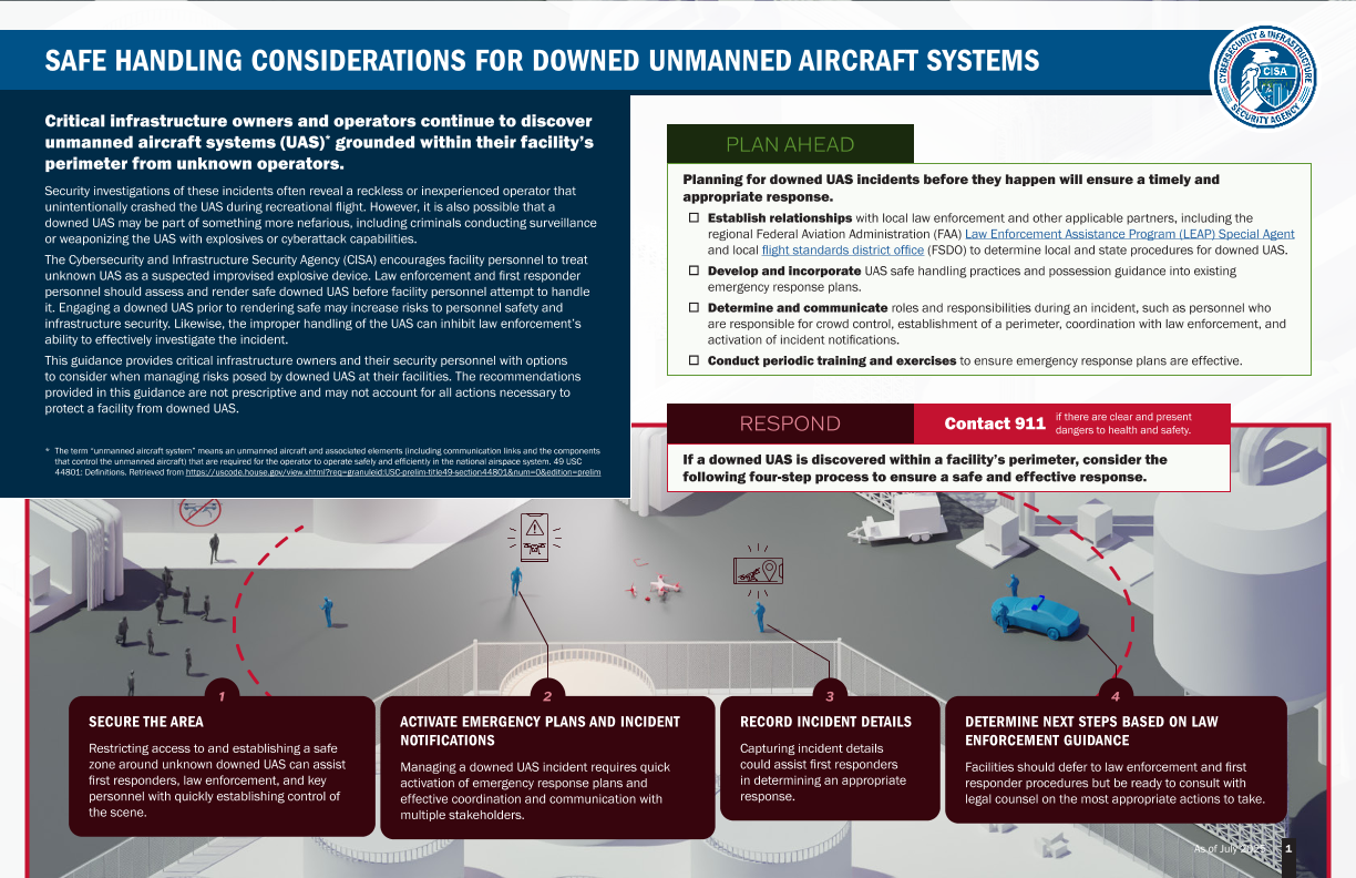 【Cybersecurity and Infrastructure Security Agency(CISA)】【202507】SAFE HANDLING CONSIDERATIONS FOR DOWNED UNMANNED AIRCRAFT SYSTEMS-4页