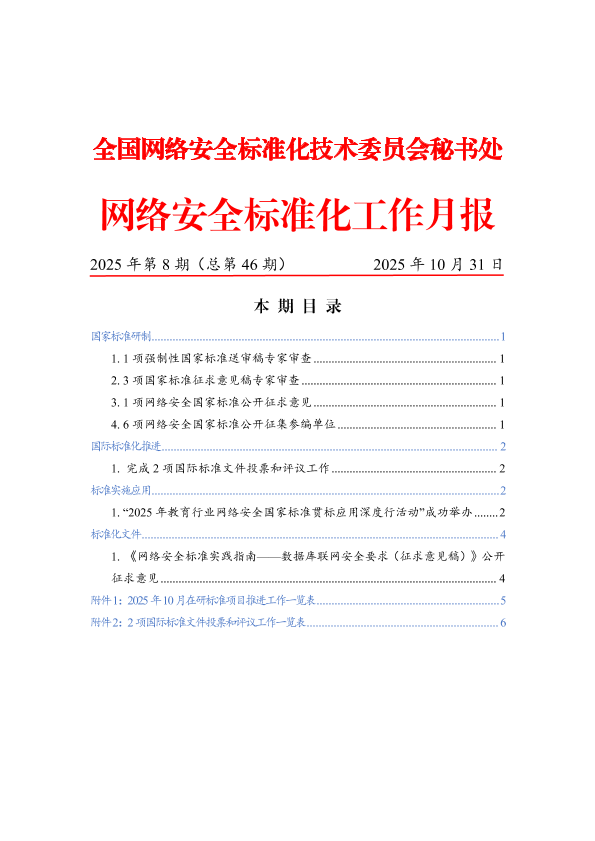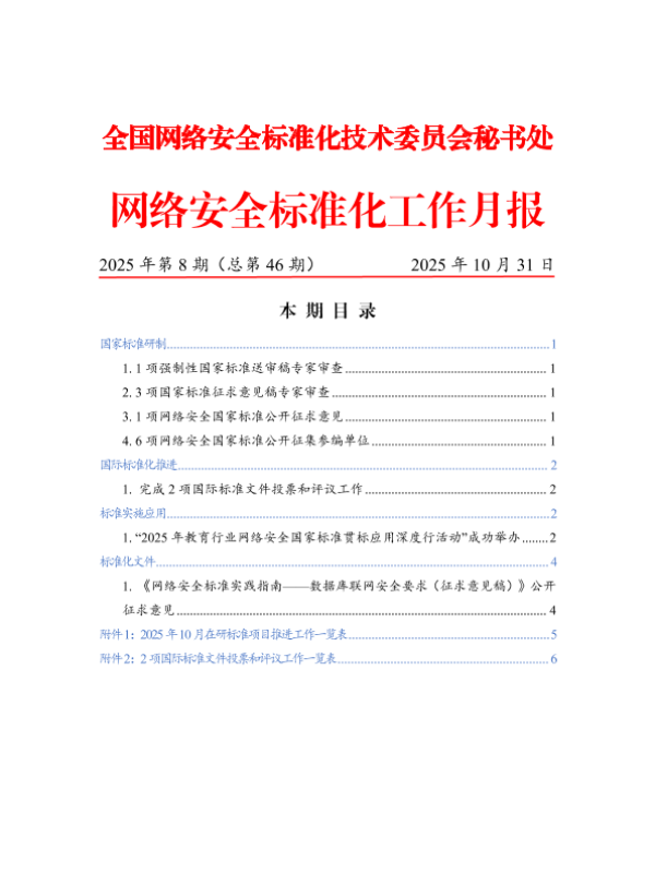 【全国网络安全标准化技术委员会秘书处】【202510】网络安全标准化工作月报-7页