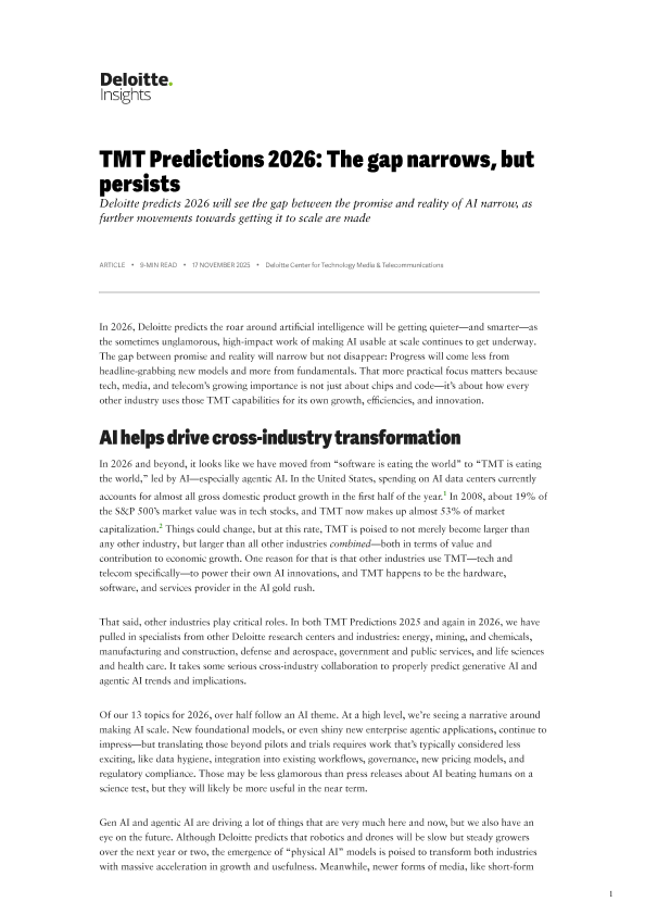【Deloitte Touche Tohmatsu Limited】【202511】TMT Predictions 2026 The gap narrows,but persists-113页