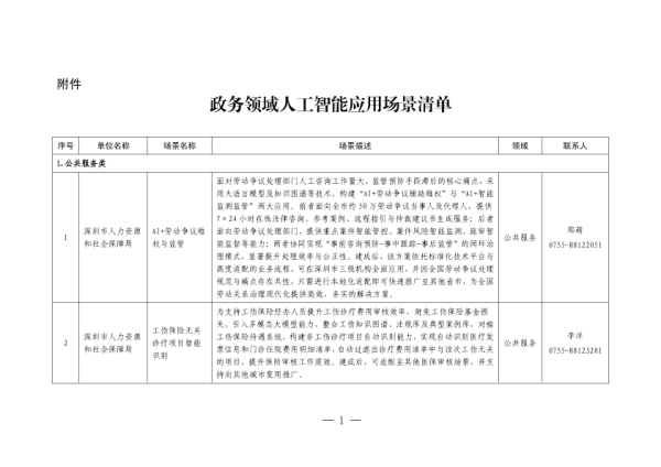 【深圳市人力资源和社会保障局&深圳市民政局&深圳市工业和信息化局&深圳市城市管理和综合执法局&深圳市退役军人事务局&中共深圳市委社会工作部&中共深圳市委统战部(市民族宗教事务局)&坪山区政务服务和数据管理局&深圳市水务局&深圳市公安局&深圳市应急管理局&深圳市住房和建设局&深圳市交通运输局&深圳市规划和自然资源局&光明区政务服务和数据管理局&深圳市统计局&深圳市地方金融监督管理局&深圳市财政局&深圳市生态环境局&深圳市中级人民法院&深圳市司法局】【202511】政务领域人工智能应用场景清单-17页