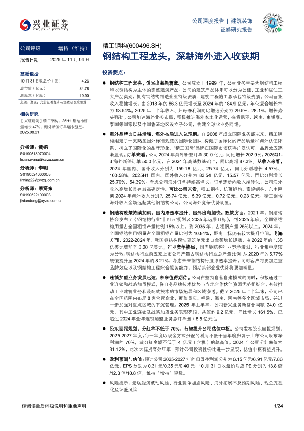 【兴业证券】【202511】钢结构工程龙头,深耕海外进入收获期-24页