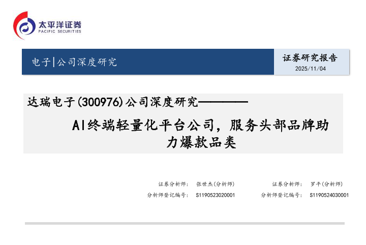 【太平洋证券】【202511】达瑞电子(300976)公司深度研究————AI终端轻量化平台公司,服务头部品牌助力爆款品类-25页