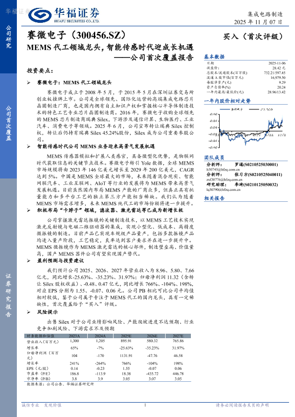 【华福证券】【202511】赛微电子:MEMS代工领域龙头,智能传感时代迎成长机遇——公司首次覆盖报告-23页