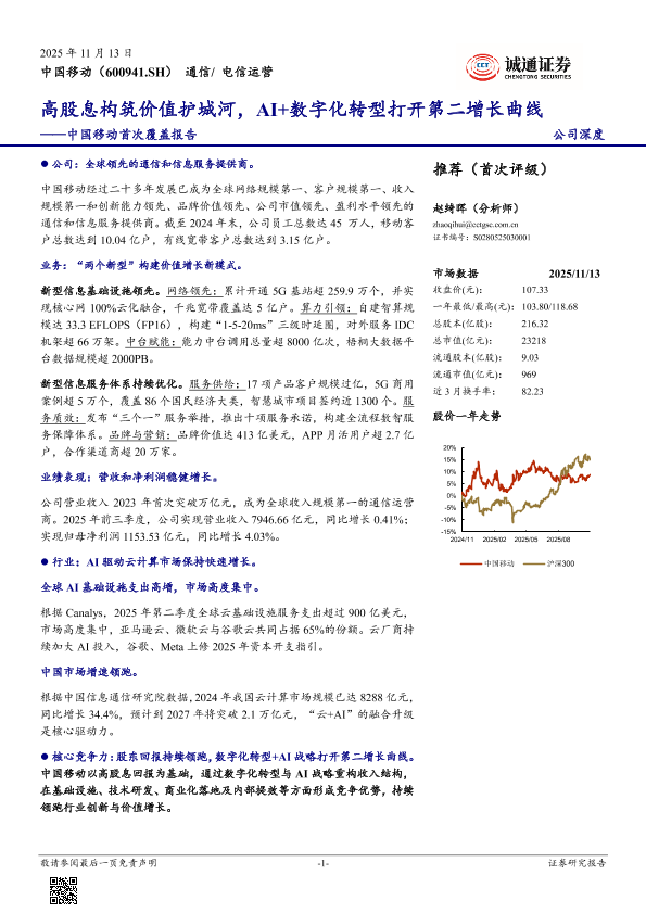 【诚通证券】【202511】高股息构筑价值护城河,AI+数字化转型打开第二增长曲线——中国移动首次覆盖报告-19页