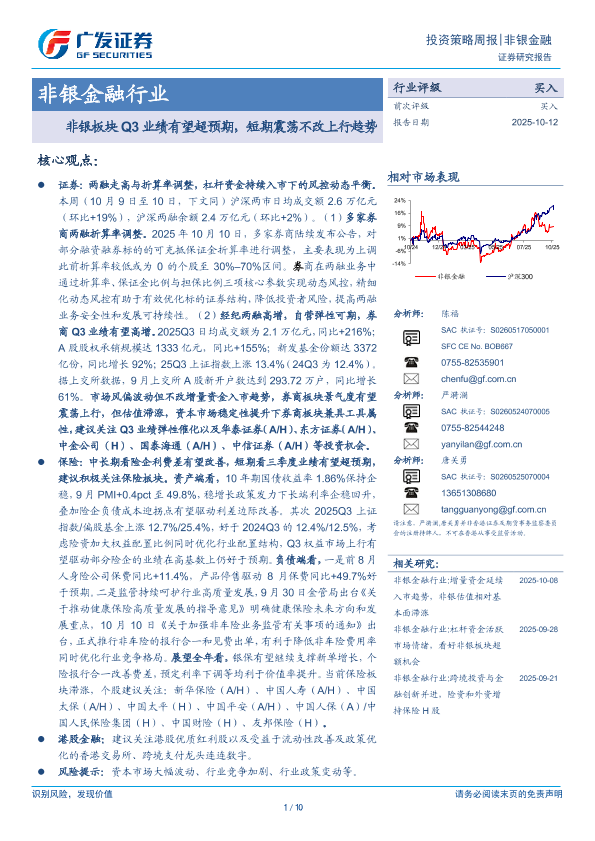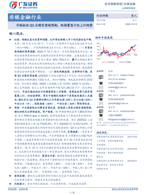 【广发证券】【202510】非银板块Q3业绩有望超预期,短期震荡不改上行趋势-10页