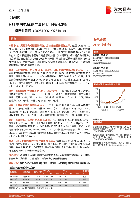 【光大证券】【202510】9月中国电解铜产量环比下降4.3%——铜行业周报(20251006-20251010)-18页