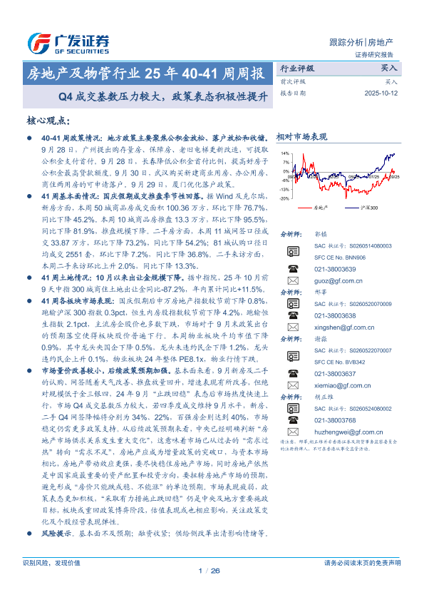 【广发证券】【202510】房地产及物管行业25年40-41周周报:Q4成交基数压力较大,政策表态积极性提升-26页