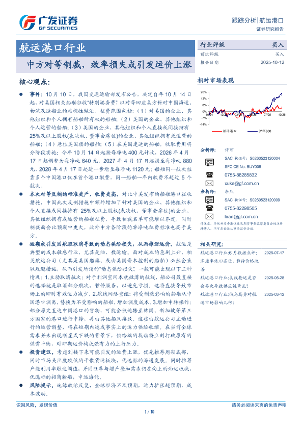 【广发证券】【202510】航运港口行业:中方对等制裁,效率损失或引发运价上涨-10页