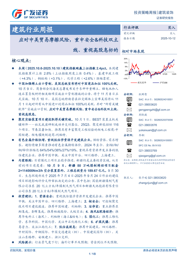 【广发证券】【202510】建筑行业周报:应对中美贸易摩擦风险,重申安全&科技双主线、重视高股息标的-18页